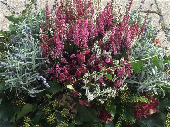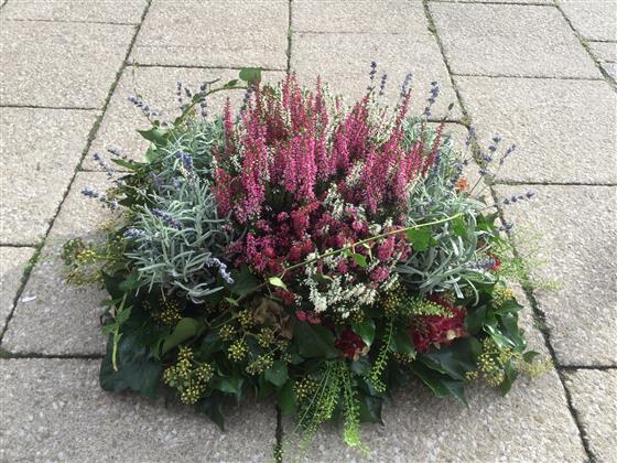 Designed specifically for someone who loved gardening - but may not necessarily be a fan of cut flowers! We created this using heather and lavender plants, edged with ivy and natural garden foliage. Selection of plants would depend on the season.