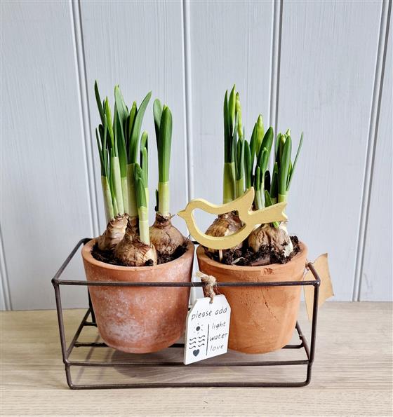 Rustic Spring Bulb Duo in Terracotta Pots