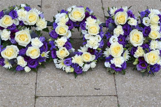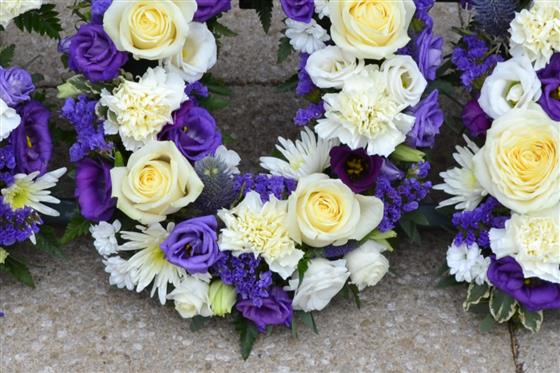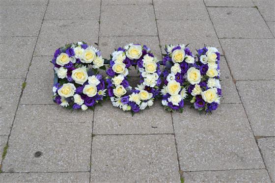 This SON tribute is a more informal design of flowers in purple and white. Other colour combinations are available.