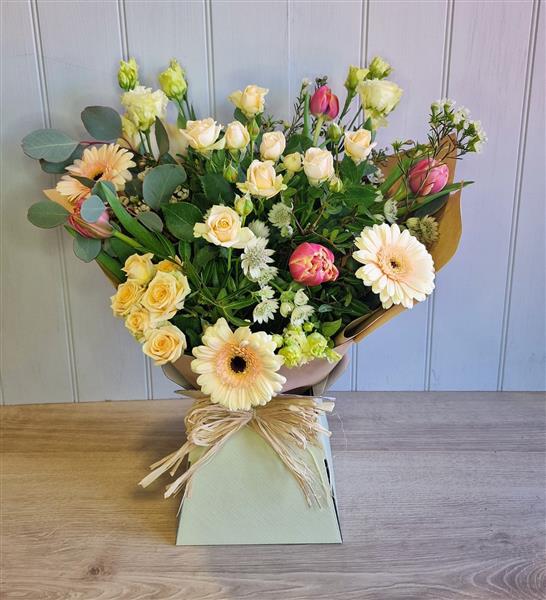 Please note that due to the seasonal availability of flowers it may be necessary to vary individual stems from those shown. Our skilled florists may substitute flowers for one similar in style, quality and value. Where our designs include a sundry item like a vase or basket it may not always be possible to include the exact item as displayed. If such an occasion arises we will make every effort to replace the item with a suitable alternative.